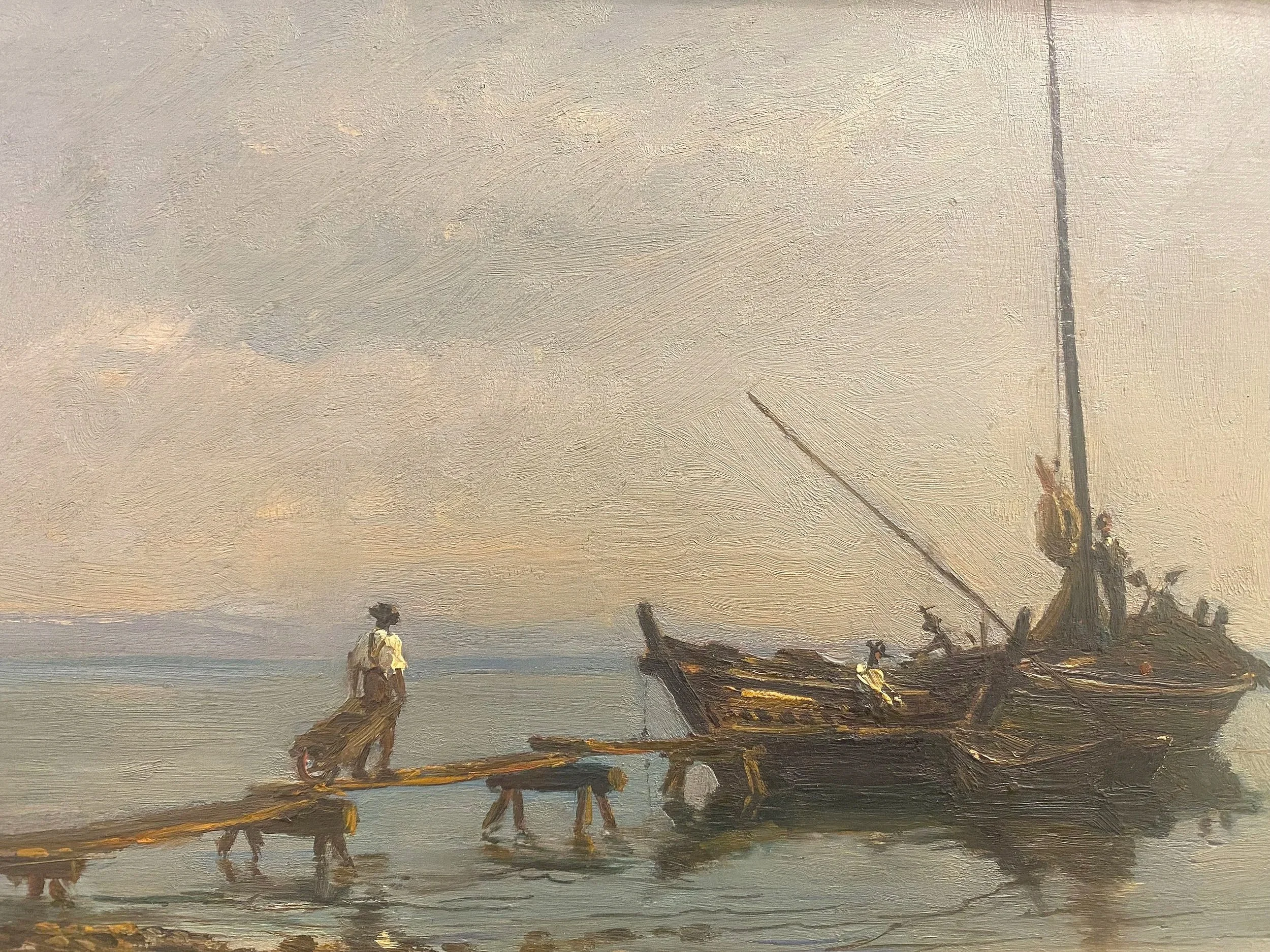 Huile sur panneau barque du Léman